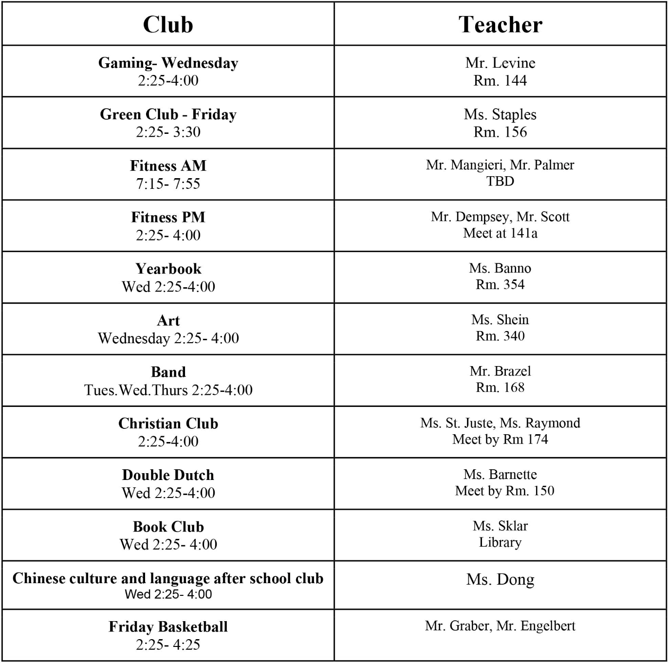 * Please review the list of clubs and send back the permission slip if your child would like to attend.